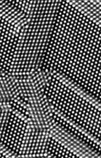 Electron microscopic image of Silicon. The magnification is about x10,000,000, each bright spot is a group of Silicon atoms. I shot this image on a 1-millon-volt Atomic Resolution Microscope. | ||||||||||||||||